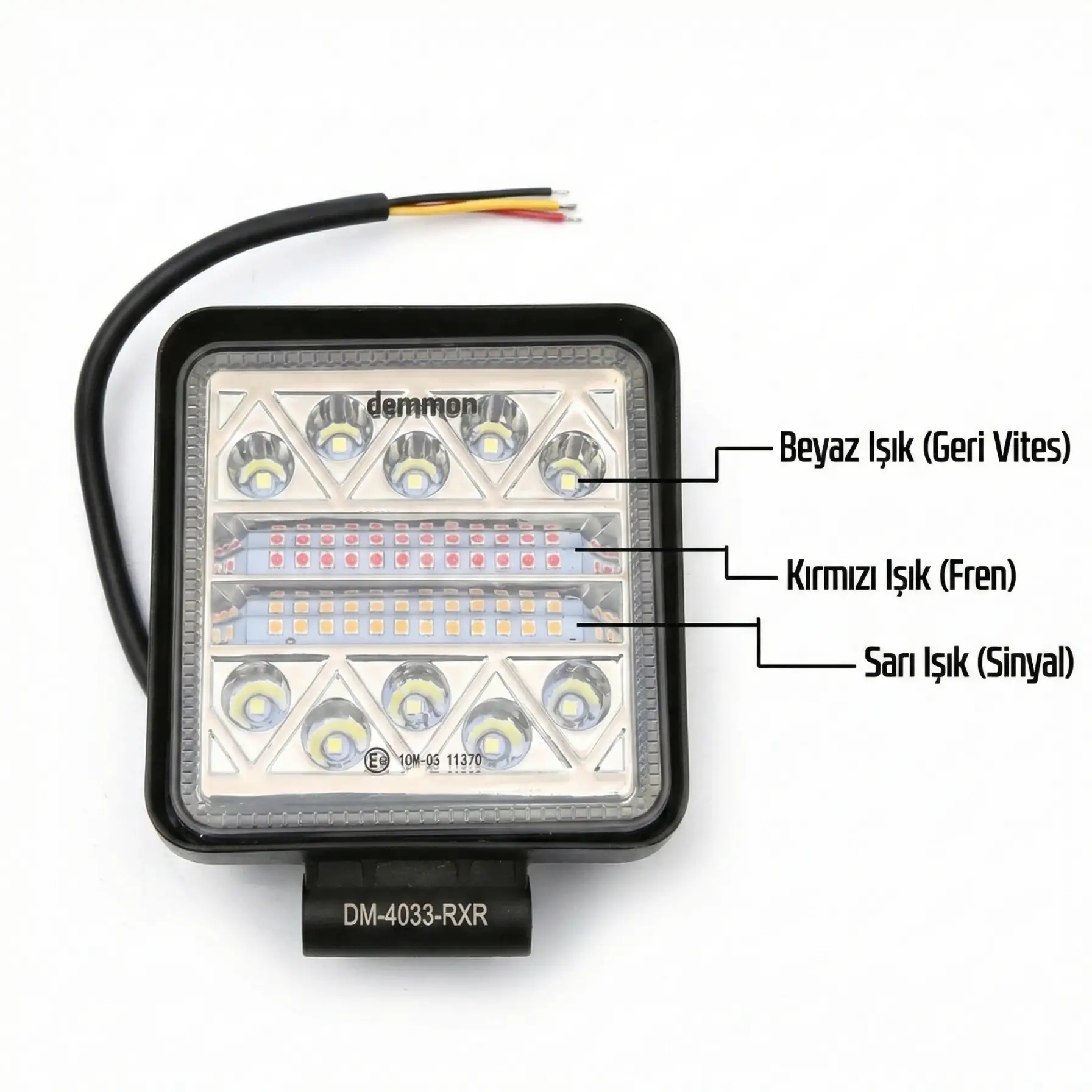 DEMMON KARE BEYAZ SARI KIRMIZI LED