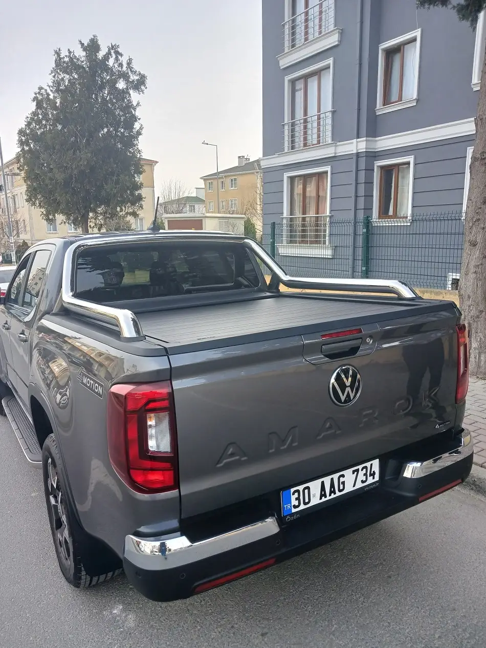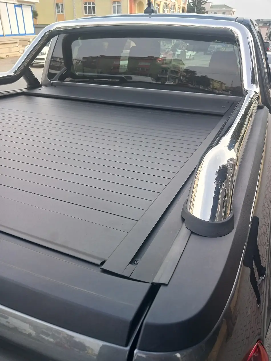Volkswagen Amarok PTS Sürgülü Kapak, Kapalı, Yarı Açık ve Tam Açık Olmak Üzere Üç Kademeli Bagaj Kapama ve Güçlü Yay Mekanizması ile Üretilmiştir. Sürgülü Kapak Güçlü Alüminyum Çıtalardan Üretilmiş Olup Doğanın En Zorlu Unsurlarına ve Darbelere Karşı Dayanıklı Olması İçin Mat Dokulu Siyah Kaplamalı Toz Boyalıdır.